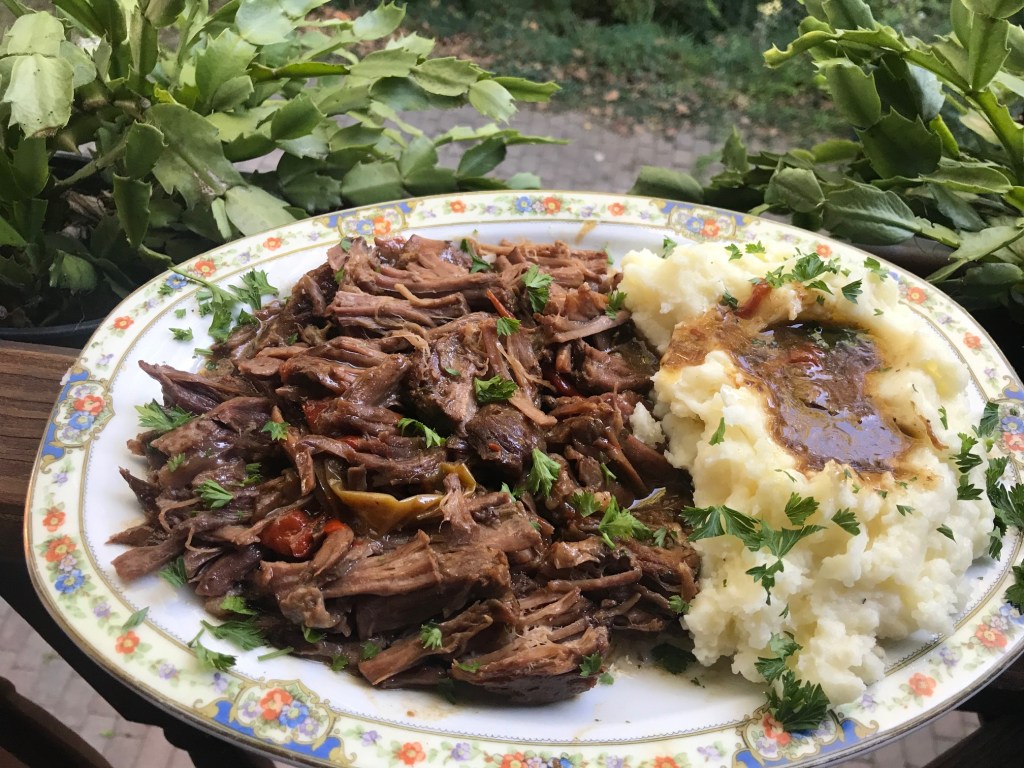 The story goes that about 20 years ago, Robin Chapman of Mississippi made what she just called crockpot “roast”. A variation of the popular 90’s slow cooker roast using dry Italian seasoning and pepperoncini, Ms. Chapman swapped ranch dressing for the Italian, and added dry au jus gravy mix. Oh and a stick of butter and a few pepperoncini. Her family loved it.