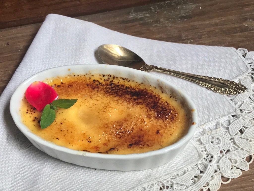 Creme brûlée is a unique dessert, silky smooth custard underneath a sweet crackling sugar crust. And each one is single serve, an elegant dessert to have with self distancing still in place.
