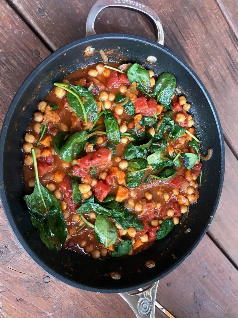 Add broth, chickpeas and tomatoes and cook until everything is tender.