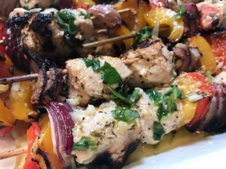 Grilled Shish Tawook with fresh vegetables and herb mop