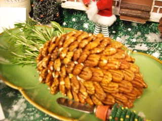 The shepherds would have certainly had cheese on hand to eat. It could have been the kind of Middle Eastern cheese that I make – it’s a soft cheese made with whole milk and lemons. You could substitute your favorite cheese. I like to make a pine cone shaped cheeseball – it’s very pretty and tasty.