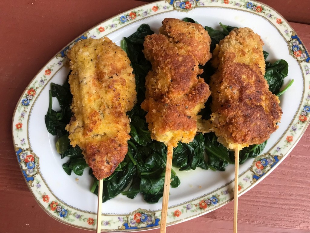 I served the city chicken on a bed of spinach with a side of boiled buttered potatoes.