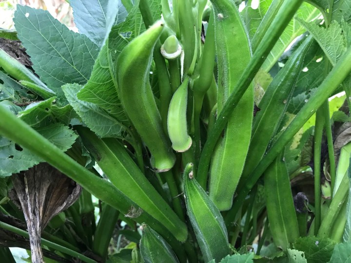 My own dwarf okra bushes are producing new pods every day, as well, so I’ve got lots of okra to eat!