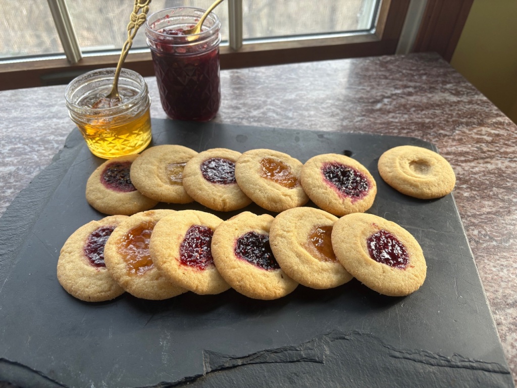 Full disclosure. We don’t have a Netflix account, so when I got a couple requests to clone Meghan Markle’s trendy jam thumbprint cookies which she made on her Netflix cooking show, my first thought was to turn to the grandkids. Grandson Will and girlfriend Kenna were visiting, so Kenna pulled up the recipe on her Netflix account.