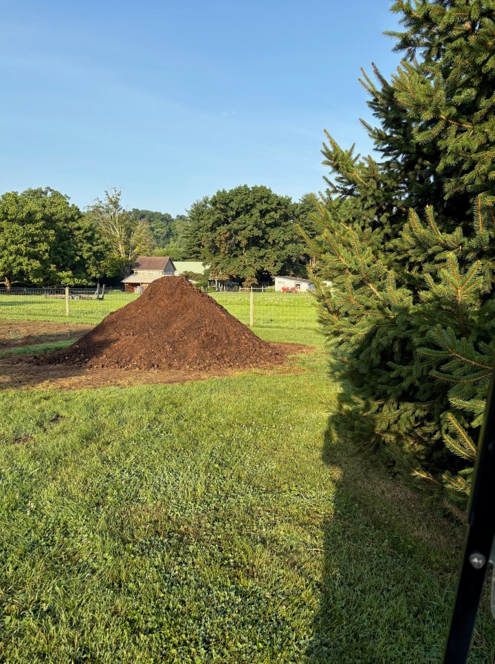 Yesterday, long-time friends Ray and son-in-law, Ronnie, brought 2 trailer loads of black gold/aged horse manure over for our gardens. I’m still smiling!